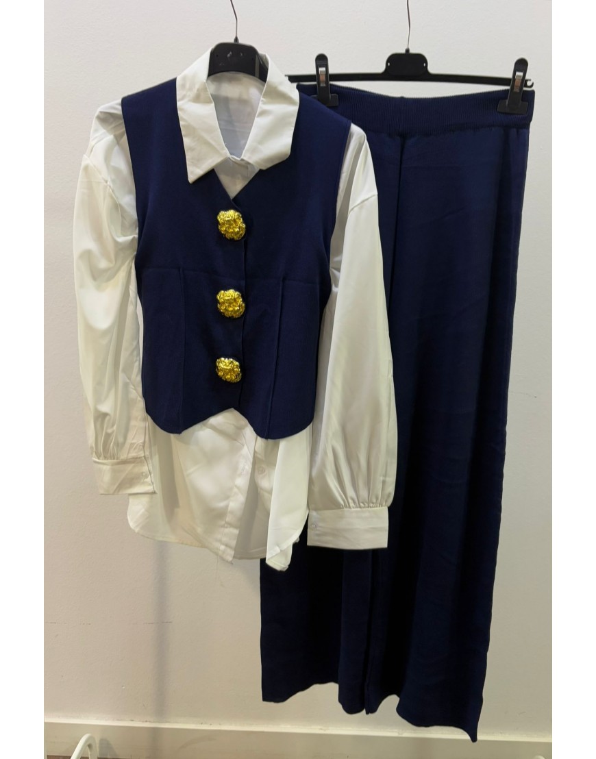 Conjunto de punto + camisa con Botón Dorado